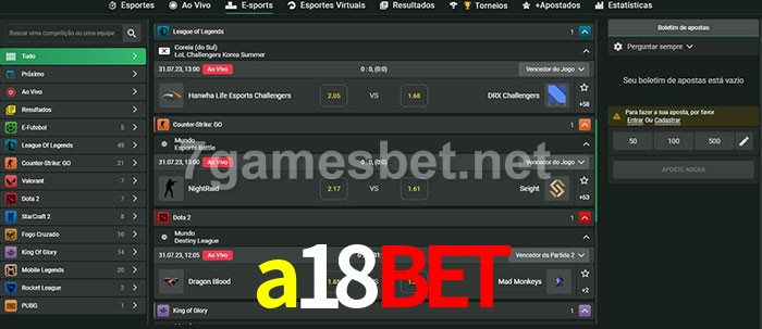 O a18bet oferece uma grande seleção de opções de apostas em e-sports com probabilidades competitivas